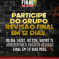 Reserve na sua agenda: no dia 14 de julho, às 22h, teremos um evento ao vivo e gratuito onde você vai aprender como bater o edital da PCCE em 12 dias. Você irá receber um cronograma para fazer uma revisão geral dos assuntos mais importantes.